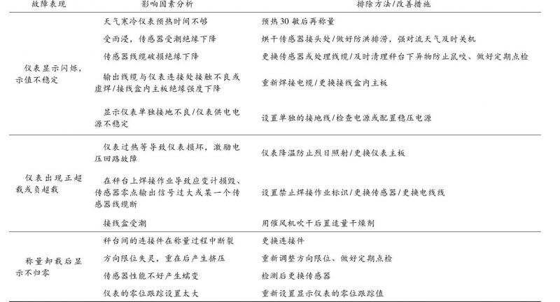 地磅的廣泛運用中會遇到各種各樣的故障現象,文章從環境條件、安裝狀態、維護保養等方面介紹了故障產生現象、原因及排除方法并形成列表。