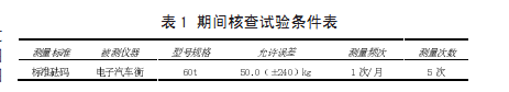 期間核查試驗條件如表1所示。