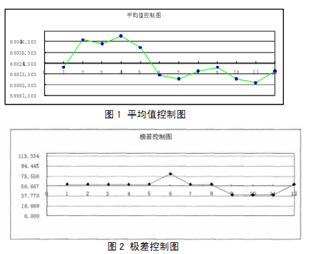 由以上數(shù)據(jù)分別繪制出如圖1圖2所示平均值控制圖與極差控制圖。